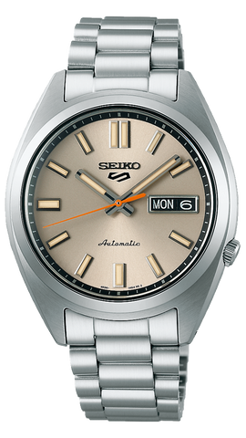 Model # SRPK91 is based on SEIKO's world-renowned best selling SNXS original sport watch series. Taking inspiration from the brands heritage with an everyday lifestyle watch, incorporating elements of the original models but with upgraded performance in a compact case size. The automatic 37.4mm brushed and polished stainless steel case features manual wind capacity and hack function for precision setting.  The sun brushed dial is surrounded by polished bezel and metallic minutes track under a curved hardlex crystal. LumiBright baton style hands and diamond cut indices with oranges seconds hand are reminiscent of the vintage era watches of the 70's. Equipped with a double day/date window @3 makes for easy readability at a glance.  A recessed push-pull stainless steel comfort crown is positioned at the 4 with 100 meter water resistance capacity. Powered by Seiko's own in-house-made automatic caliber 4R36 movement viewable behind the exhibition case-back with 41 hour power reserve. Fitted with a new stainless steel brushed and polished 3-link bracelet with bi-fold deployant clasp signed Seiko gives a classic nostalgic style.
