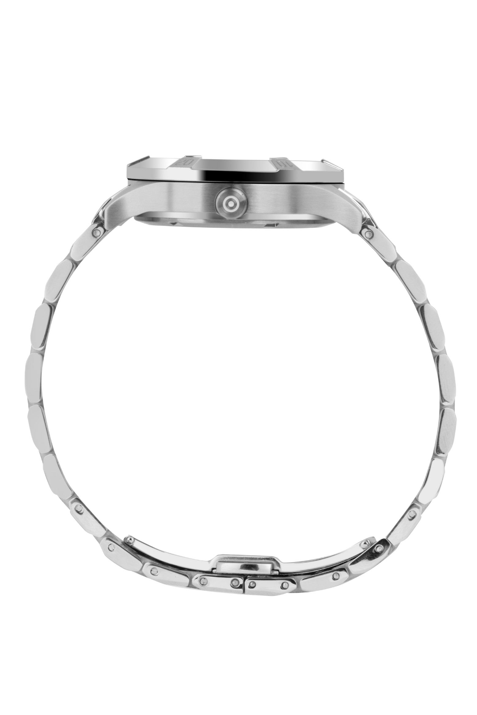 • Polished notched steel uni-directional rotating bezel with etched number indicators