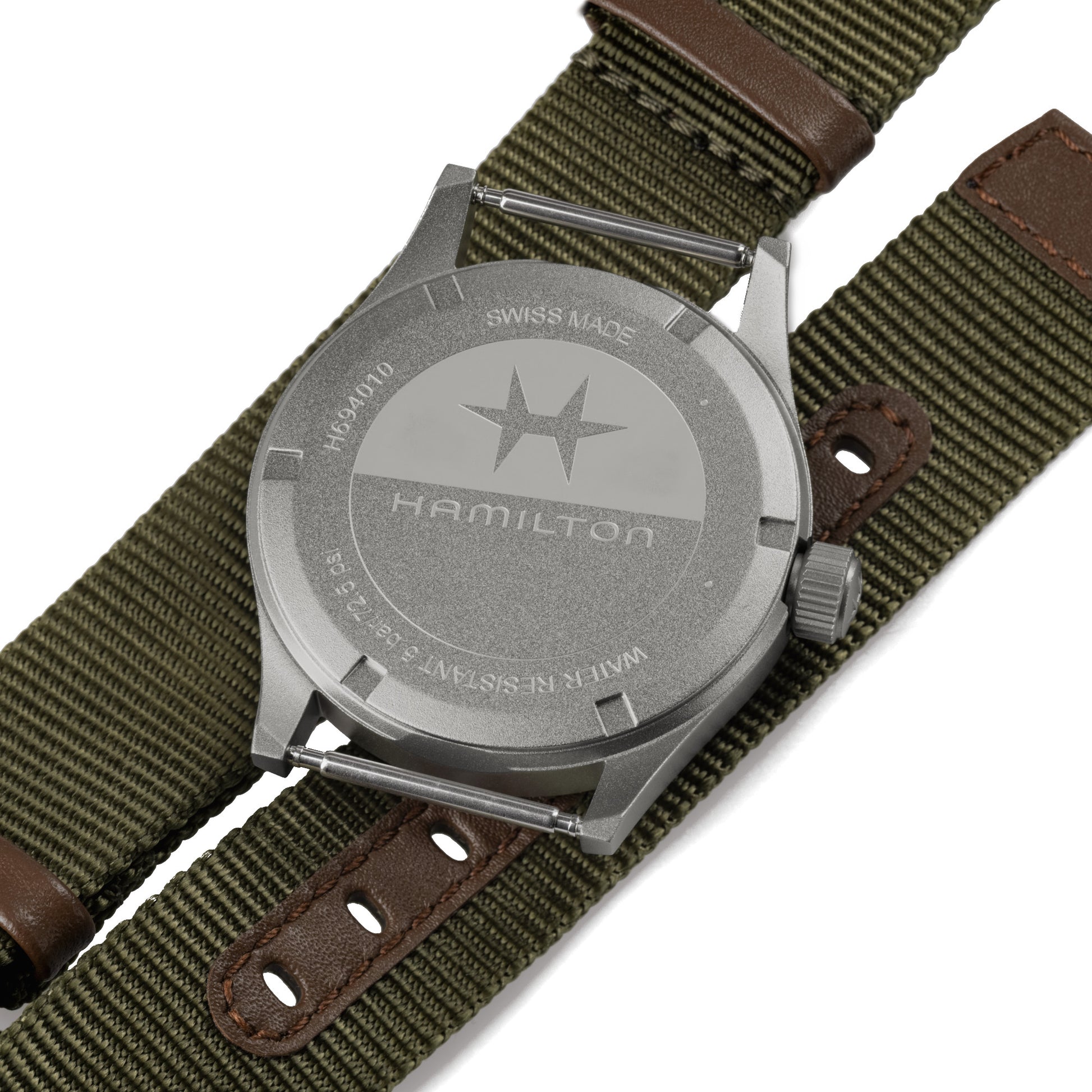 Case back Solid screw on stainless steel case back with Hamilton logo
