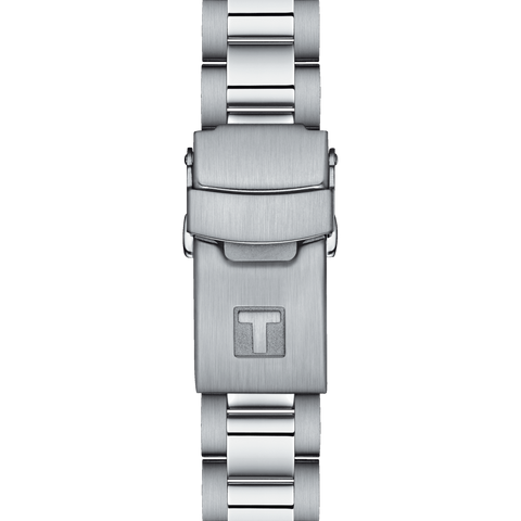 • Stainless steel screw-down crown with TISSOT logo set within brushed crown guard