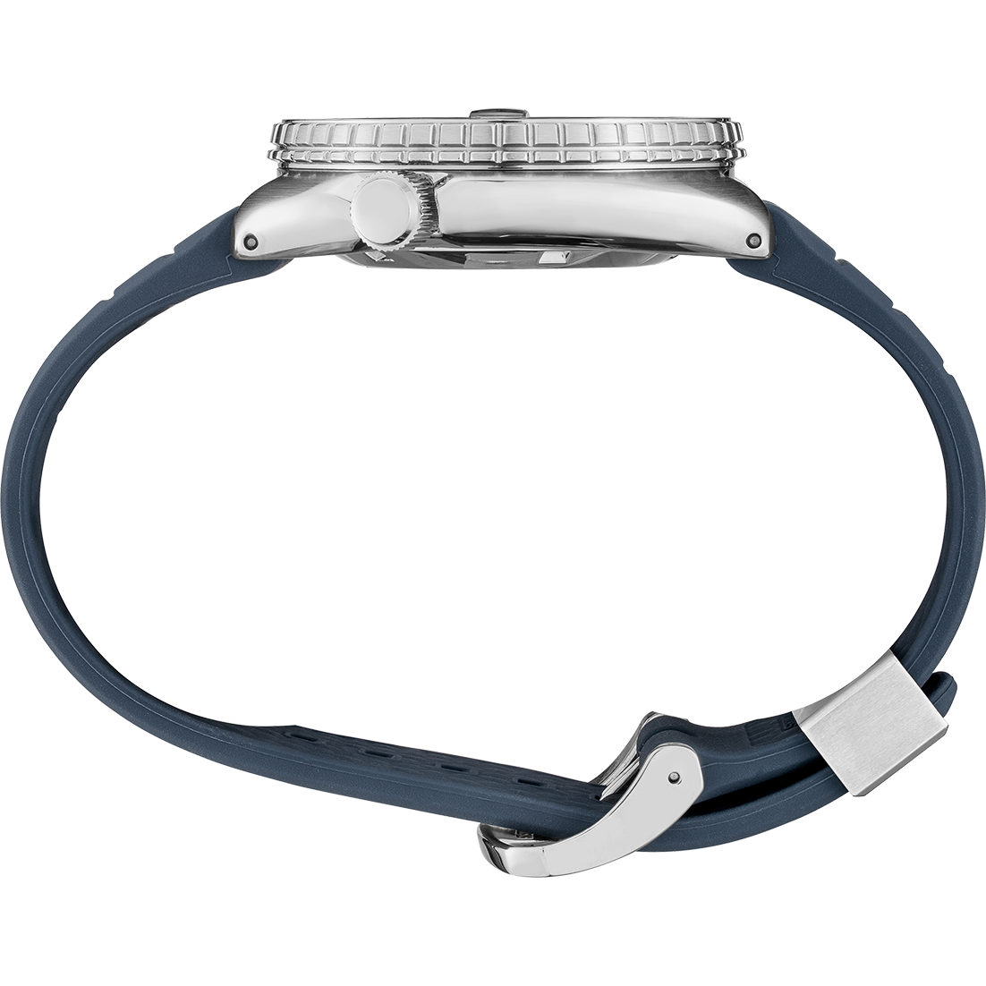 • Blue ceramic stainless steel notched uni-directional 120 click rotating bezel