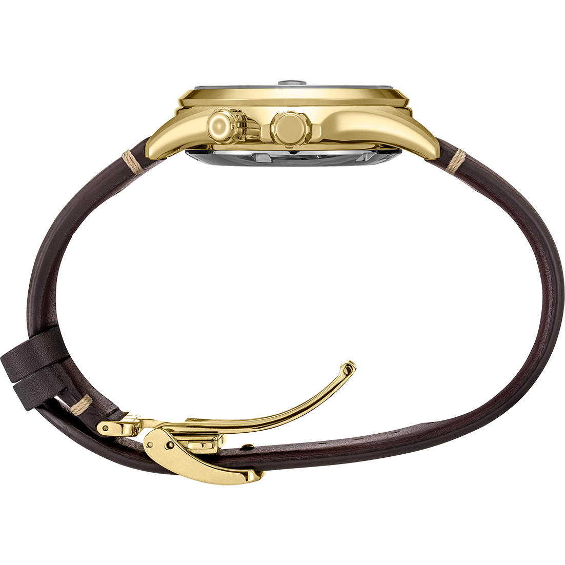 • Brushed gold-tone stainless steel 2 button deployment safety clasp