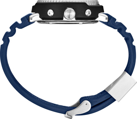 • Blue accordion shaped silicone strap with Seiko logo