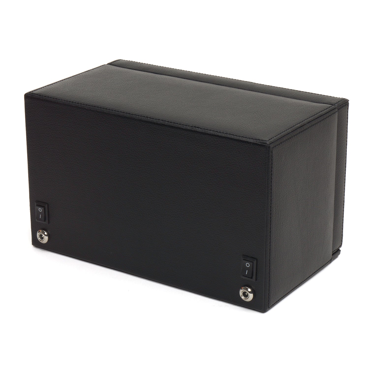 The Cub Collection by Wolf is an affordable solution to a quality entry level watch winder with a classic design that comes in several colors. The double watch winder is covered in a pebble grained leatherette exterior with matching stitch. Fitted with a flip down acrylic glass cover with soft grosgrain fabric interiors. Polished chrome hardware with large removable cuffs will accommodate watches up to 52mm in size. Featuring an LED battery indicator on/off light powered by batteries or optional A/C power adapter. Equipped with a pre-programmed intermittent winding system with bi-directional rotations and pause/sleep modes with 900 TPD (turns per day),