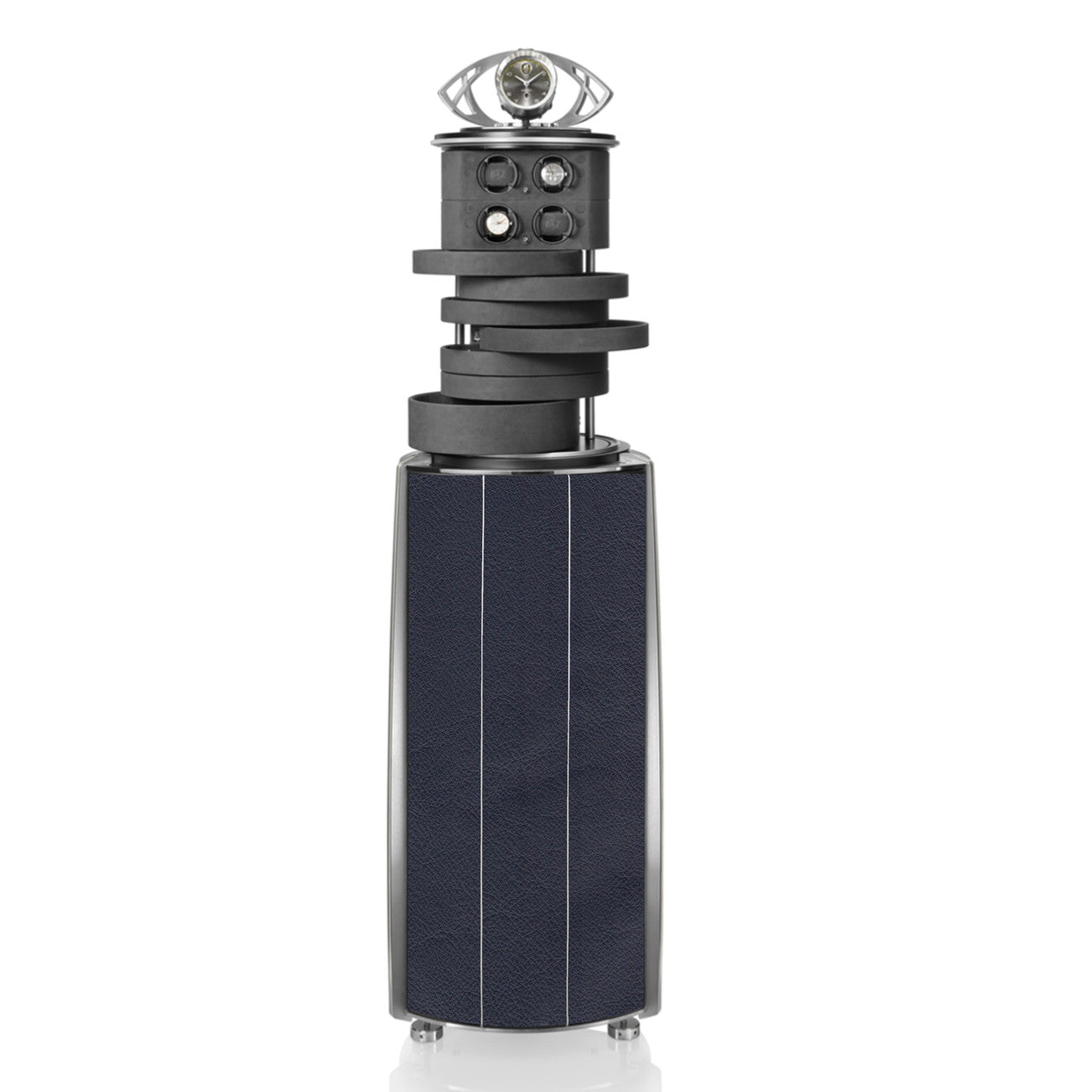 The GRAND DELUXE version of the ILLUSION Collection from the prestigious House of BUBEN & ZÖRWEG, is an ingenious concealed watch winding and storage system. The pedestal shaped unit is fitted with a BUBEN & ZÖRWEG signature clock showcased on top as an presentational ornamental piece.  Designed as a stand alone piece to fit effortlessly in any interior, your valuables are hidden within and accessible behind an innovative opening mechanism that elevates via fingerprint sensor technology.  The exterior is hand-crafted in the finest Italian Nappa leathers with polished stainless steel accents. The interior is lined in luxurious plush velour with state-of-the-art LED lighting system to beautifully illuminate your collection. You choose your choice of interior components of up to 10 watch winders and/or two sizes of storage drawers according to which combination you choose. With six levels of storage and two options for drawer inserts, (cufflink or universal tray) the pivoting drawers give easy and access to your valuables. Fitted with height adjusting feet for your convenience.