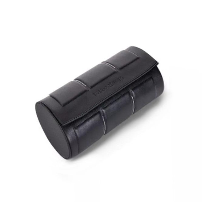 The Nitro Collection Case from the house of BUBEN & ZÖRWEG is the perfect travel companion for your timepieces collection. The smooth calf skin leather exterior has a curved hard molded shell with three cushioned panel accents and contrasting stitch. Three of your fine wrist watches will be safe within the scratch resistant soft black velour interior with individual compartments. Innovative slotted cushions easily slide into its chamber to lock your watches into place. The stylish Nitro watch roll has 4 individual snap button closures to keep your items snug and secure during transport.