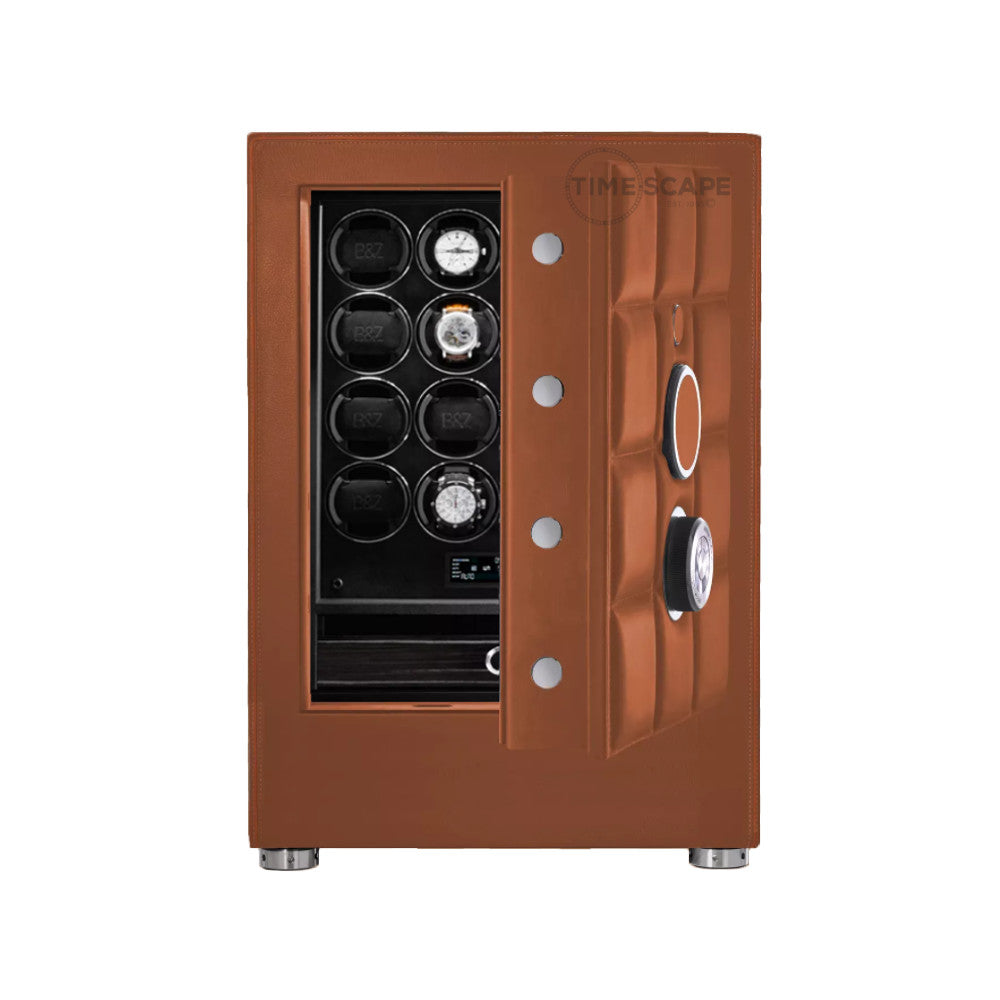 The ORION series is a collection of elite security safes built with sophisticated technology and the finest in superb German craftsmanship from the House of BUBEN & ZÖRWEG. An elegant space saving, multi-storage watch winding system for the most prestigious watch collectors to house and secure their precious valuables. The ORION S compact winding system is hand-crafted in the finest Italian Nappa leathers, equipped with a padded exterior door and decorative stitched exterior in a variety of colors. The interior is lined in luxurious plush velour with drawers of glossy precious wood inlays and polished chrome hardware. Equipped with 8 or 16 TIME MOVER® watch winding units, and various drawer configurations of your choice according to which unit you choose.
