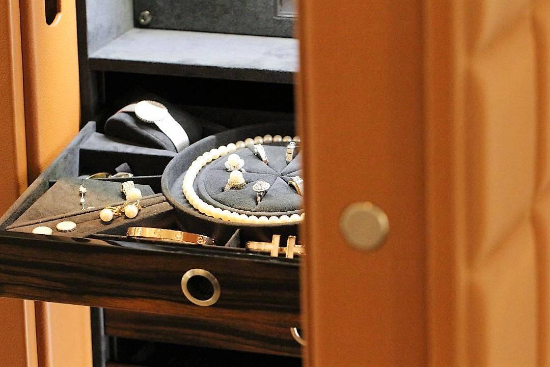 The prefect solution to store your most valuable treasures in chic style with prestigious protection, your watch collection will be safe and secure behind a Swiss security lock with mechanical key. The certified SI-110 German security safe with redundant 7-digit keypad locking system and emergency key will keep items secure. A state of the art LED lighting system will beautifully illuminate your collection with fade out function for impressive effect. Fitted with height adjusting stainless steel feet for your convenience. This piece can be customized to your specification of storage drawer components and TIMEMOVER winding units, drawer style inserts, leathers, stitch piping & metal colors of your choice. You can upgrade the German security certification VdSI to a VdSIII penetration classification for an additional fee.