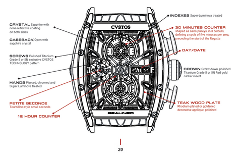 Introducing the ingenious standards of the CVSTOS watchmaking aesthetics, paired with nautical style, the Sealiner Collection. Immediately recognizable with its curved watch cases and luxurious teakwood dials. Unique and sophisticated featuring exclusive open lateral aperture sides showcasing the movement interiors unveiling its technical innovative wonders from all perspectives.
