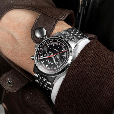 • Caliber: SW510 bicompax chronograph, DELMA custom rotor, automatic wind, 28,800bph