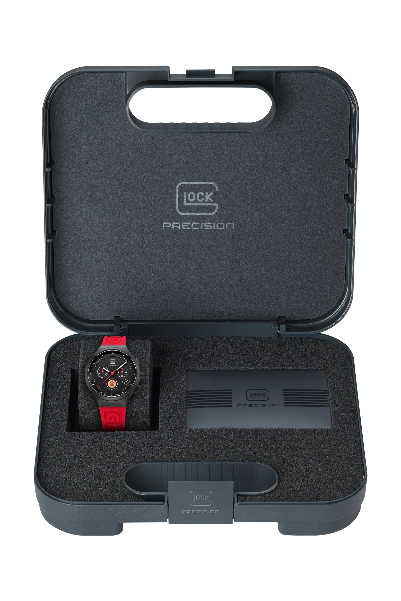 • Black PVD coated steel push-pull crown with etched red GLOCK cartridge primer image