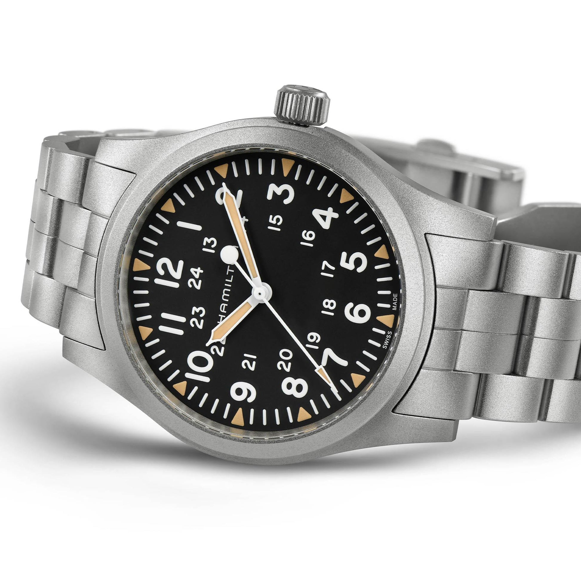 With rugged military-inspired style, the hand-wound Khaki Field Mechanical is an iconic Hamilton timepiece and a firm favorite of wristwatch collectors and enthusiasts around the world. The Khaki Field Collection is guaranteed to meet your exacting standards with all the essential equipment for your latest adventure makes.
