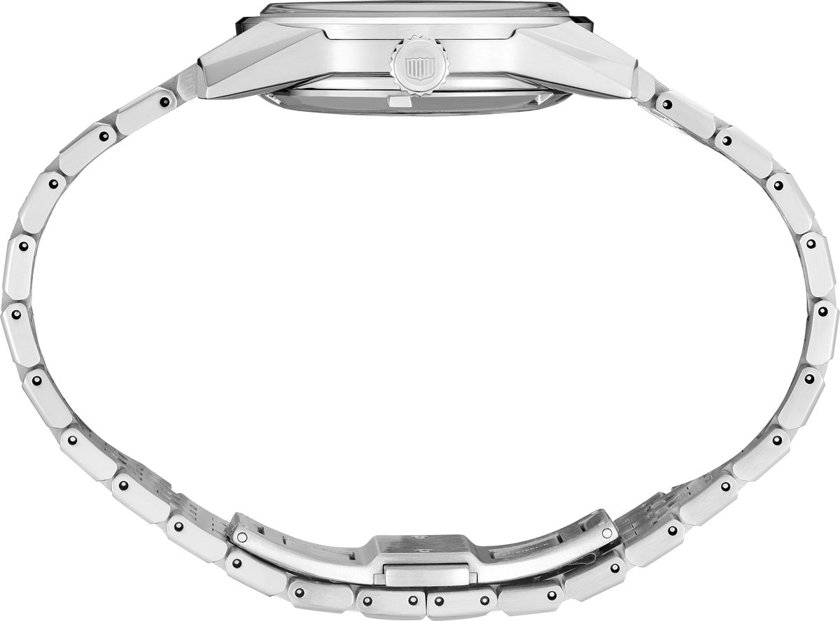• Silver polished faceted diamond shaped patinaed LumiBright hands with slim seconds