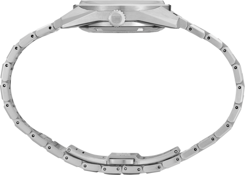 • Teal blue sun-ray brushed dial with black minutes track on outer dial