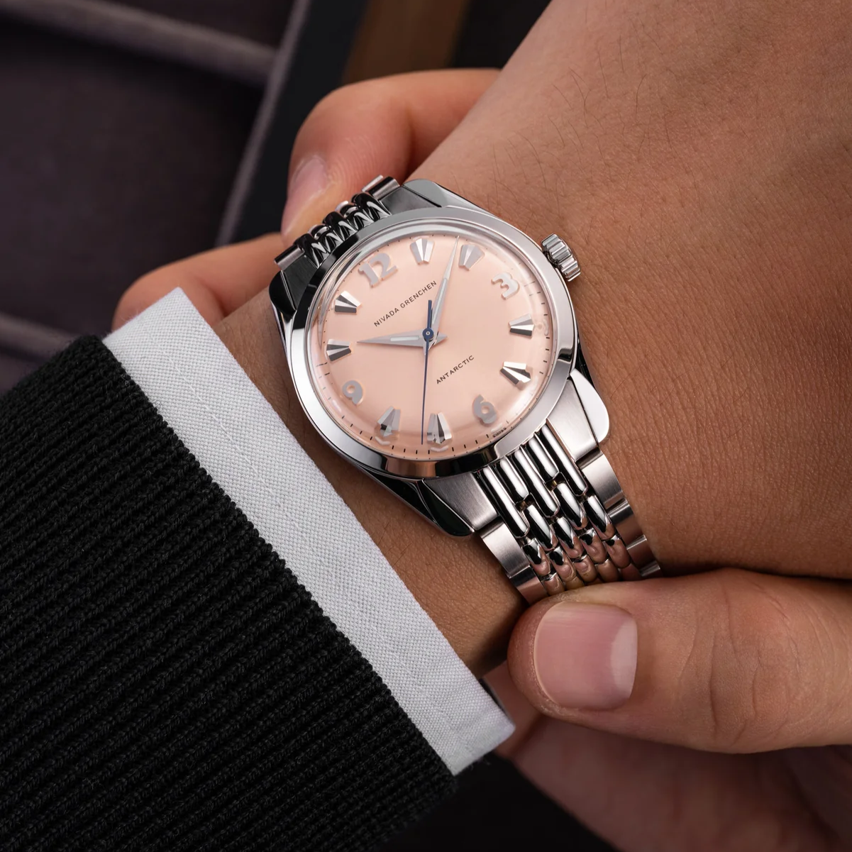 Nivada Grenchen delves deep into its rich heritage to present a renewed expression of masculine watchmaking with the Antarctic 35mm Collection. This comes complete with impeccable, artfully crafted finishes, all housed in a compact classic case that epitomizes slender elegance.