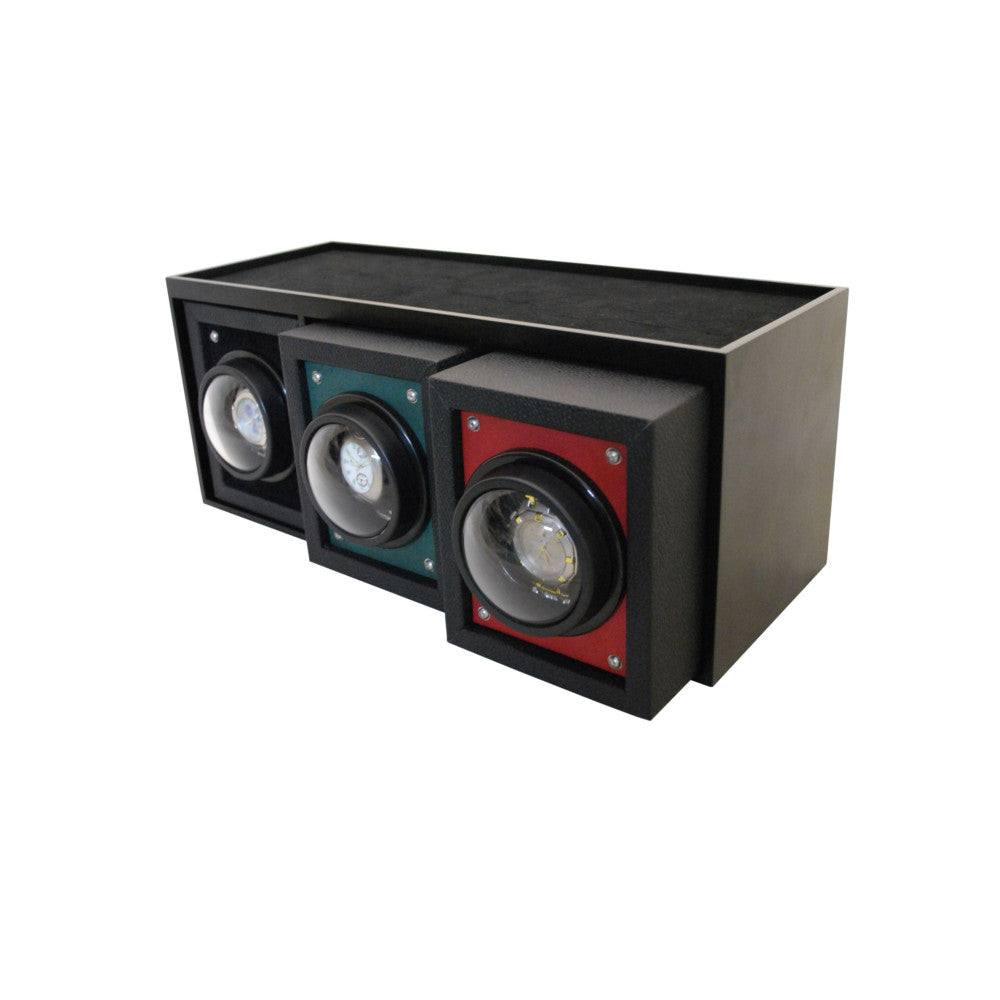 This triple-unit stackable shelf fits up to 6 individual Piccolo watch winders (sold separately). Black lacquer wood exterior with soft velour covered top to protect your watch winders when stacked. Stack up to 6 Piccolo winders with the option to add an additional shelf to keep building your collection. This modular system is affordable and stylish with unlimited options for building your watch winding collection.