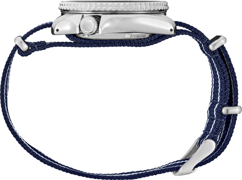 • Bi-colored blue striped NATO style nylon strap with "Super Cub" logo
