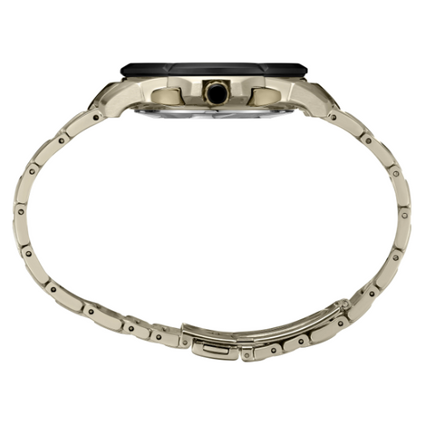 • Grooved gold-tone and black PVD coated fixed bezel