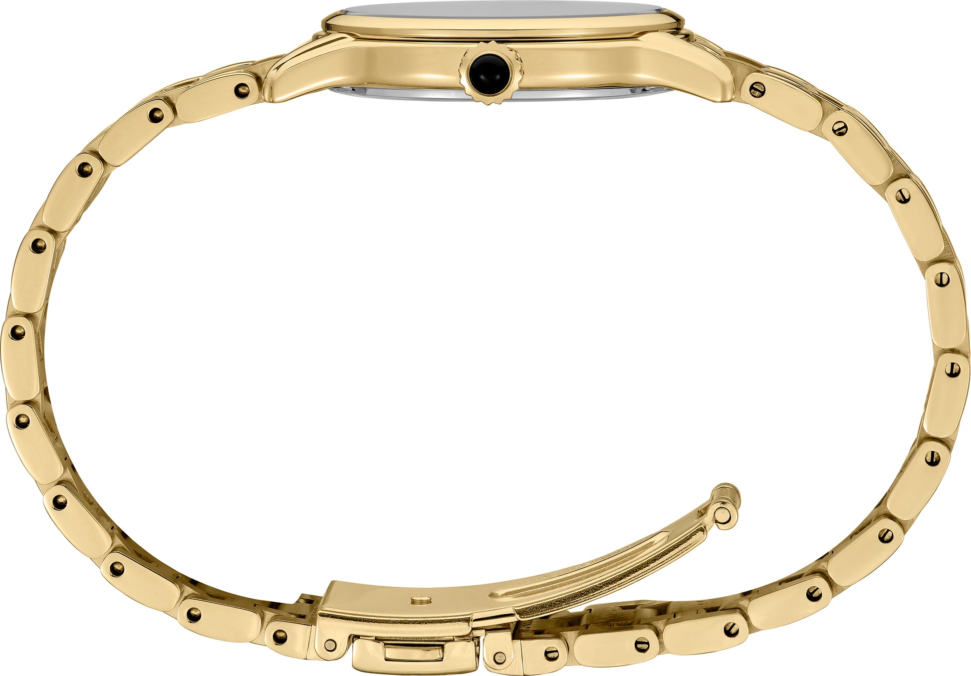 Crown Push-pull gold-tone stainless steel with black cabochon tipped jewel