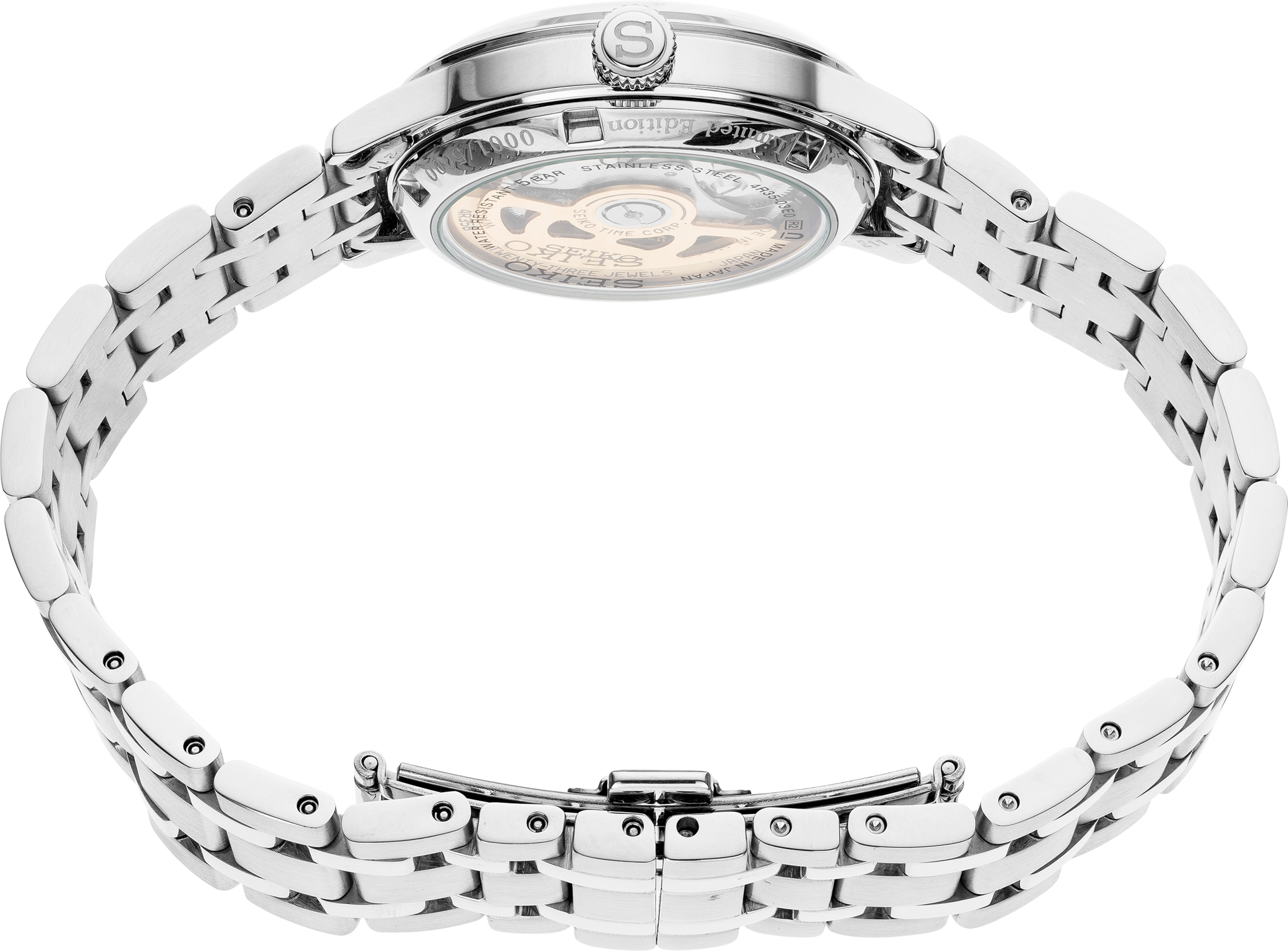 • Polished stainless steel over-sized crown signed with SEIKO logo