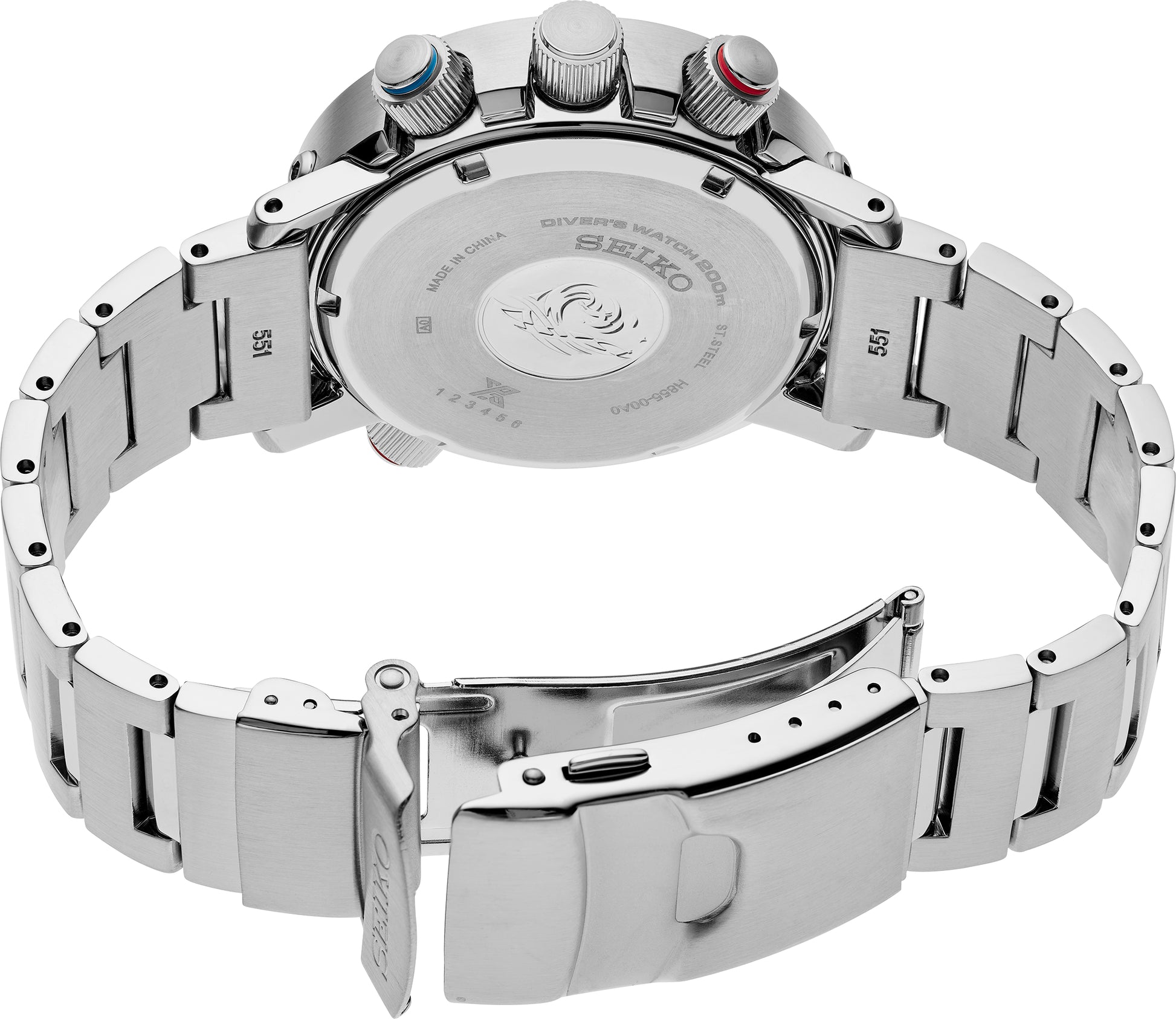 • Stainless steel red/blue chrono pushers