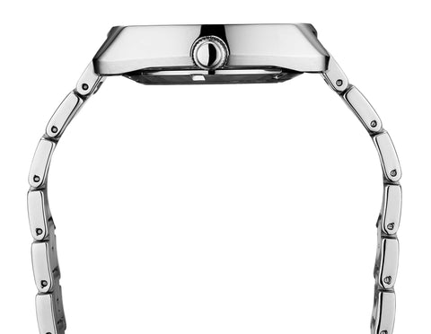• Brushed and polished rectangle shaped cushion style case