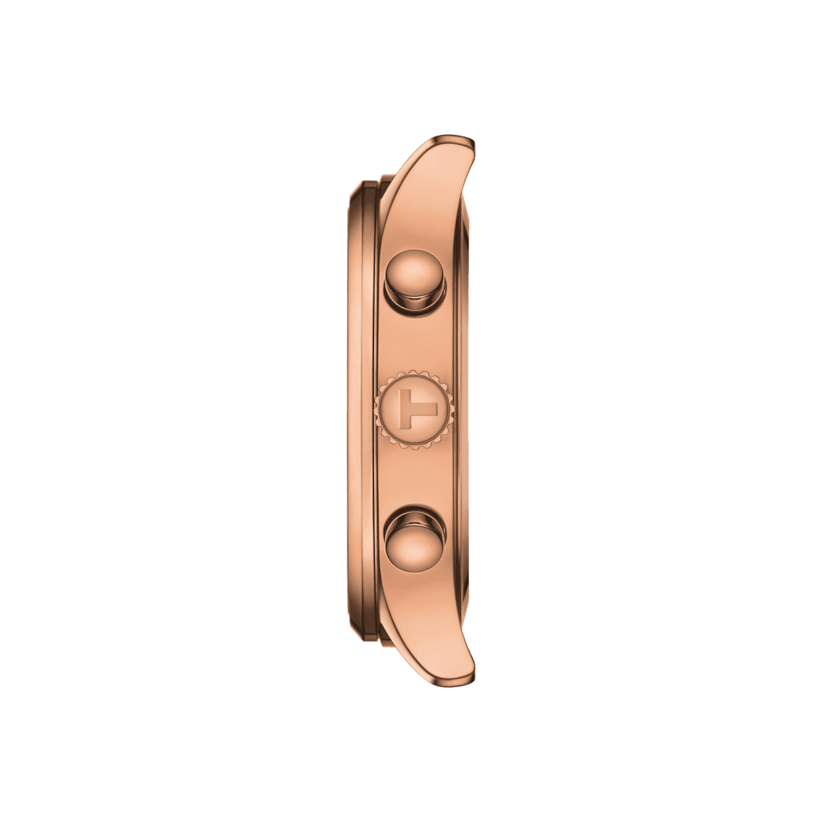 • Rose-tone PVD coated stainless steel crown with TISSOT logo