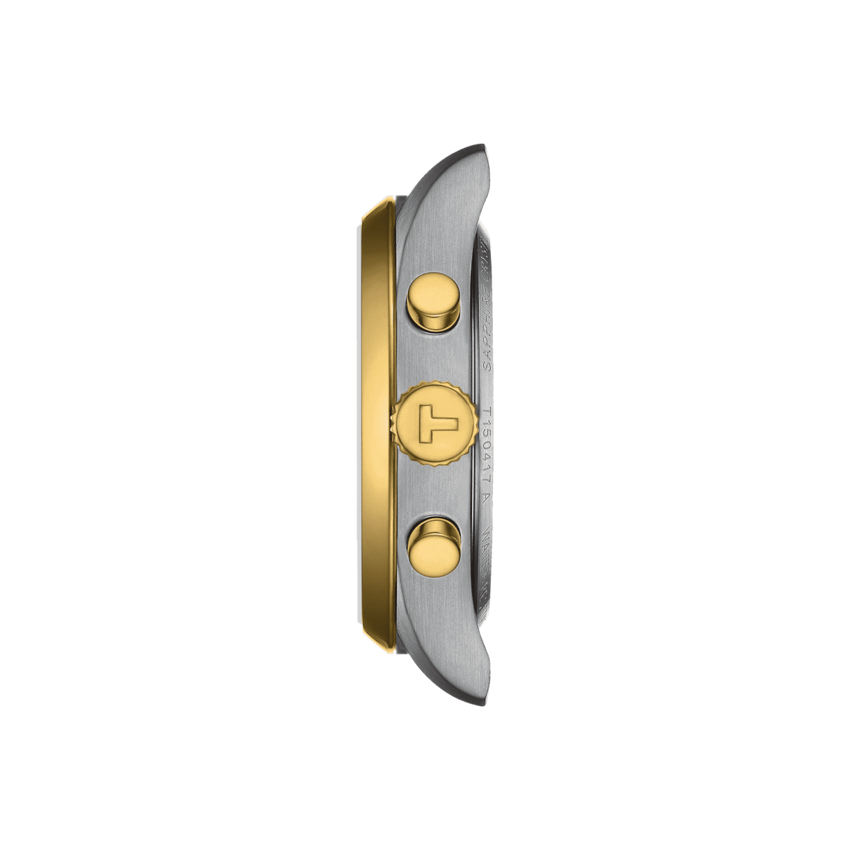 • Polished gold-tone PVD coated stainless steel crown with TISSOT logo
