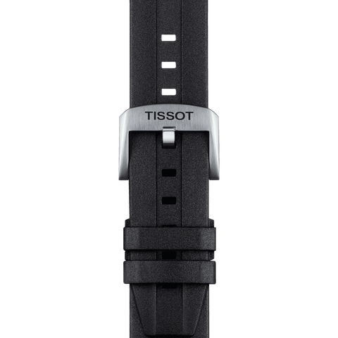 • Stainless steel screw-down crown with TISSOT logo set within brushed crown guard