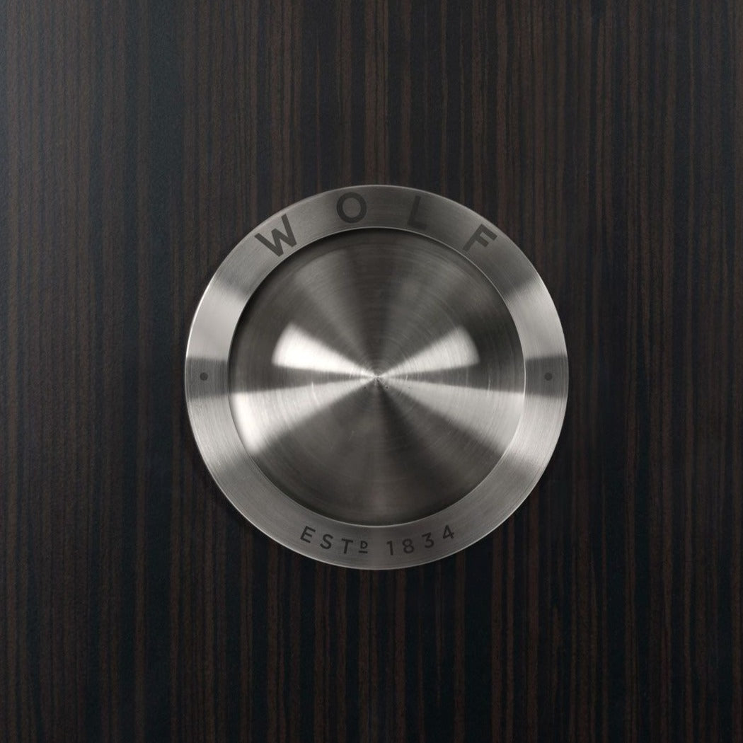 The Churchill Collection is a premium line of watch winder safes and storage systems made from the highest quality and the finest materials to meet your expectations with patented design and security from the WOLF est. 1834 brand. The multi-functional lockable 24-unit watch winding safe system with storage will safely and securely wind your timepiece collection. Composed of an ebony macassar wood matte finish exterior, the armored steel frame is fitted with a keypad combination lock. Equipped with a Palusol® fire sealed door with bi-directional steel bolts secured by the Sargent and Greenleaf brand burglary proof locking mechanism. Lined with a soft anti-tarnish treated LusterLoc™ ultrasuede interior, your watches will be safe from scratches. Four interior storage drawers will house additional items with a variety of optional compartments such as watch cuffs, jewelry inserts, valet and a service trays. Powered by an A/C power adapter, with LED interior lighting, large removable watch support cuffs will accommodate watches up to 52mm in size. Programmable via Bluetooth technology by your android or iPhone device, each individual winder can be programmed separately up to 1999 TBD(turns per day), with start/delay mode and preferred rotational directions using the downloadable app.The Churchill Collection is a premium line of watch winder safes and storage systems made from the highest quality and the finest materials to meet your expectations with patented design and security from the WOLF brand.
