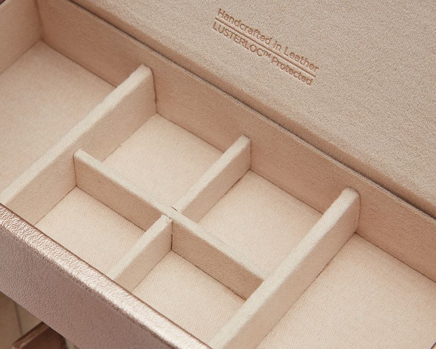 • Cream LusterLoc™ anti-tarnish soft suede interior lining